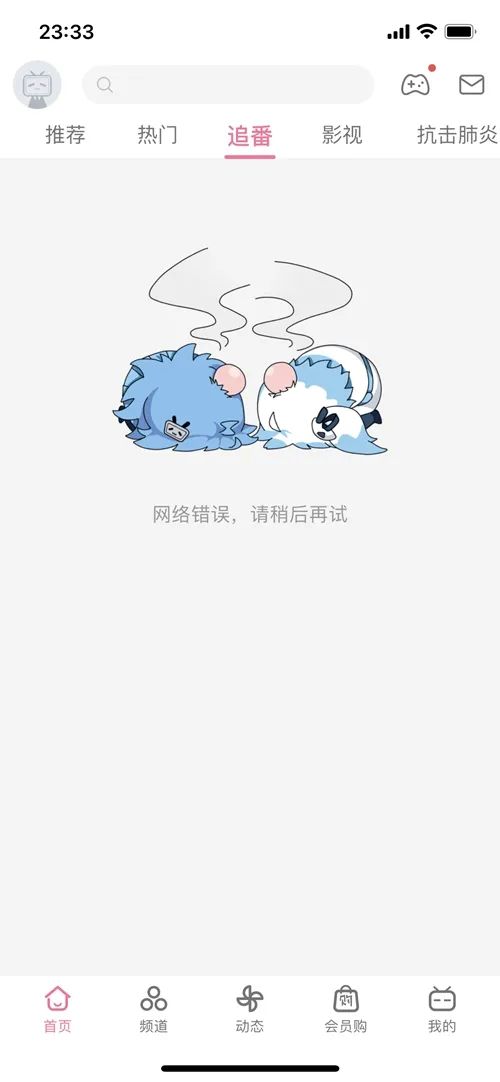 7月13日23时30分左右,B站APP多个频道发生故障,“网络错误”“加载出错”等等,A站APP各频道均显示“加载出了点小问题”。