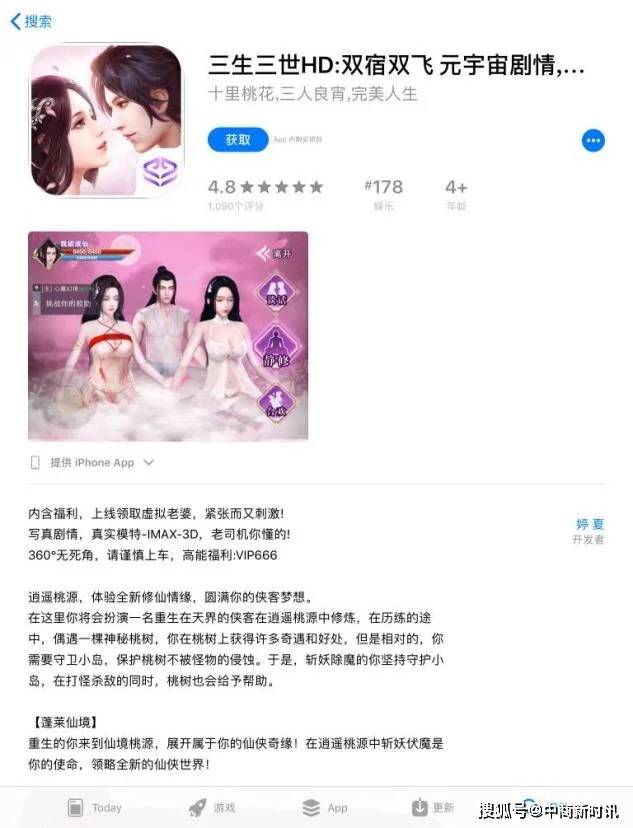 在苹果的游戏应用中,类似的擦边球同样层出不穷。一款名叫“剑与情缘”的游戏,不仅宣传图片十分“辣眼睛”,开发者还在其宣传文案中写道:高能刺激,老司机准备好了吗?