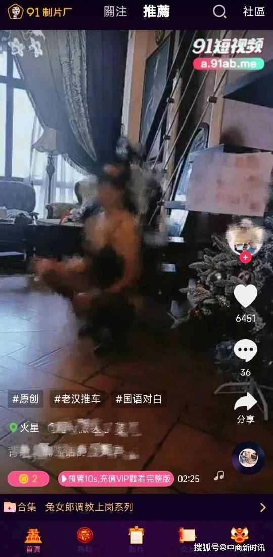一款名叫91短视频的App,在页面交互上高度模仿抖音,但里面的内容,却全都是的视频。