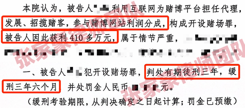 案情介绍:当事人注册成为某赌博平台会员,在该平台内参与赌博。随后,当事人成为了该赌博平台的代理,通过互联网发送网址链接发展、招揽参赌人员,根据参赌人员输钱金额按比例获取分成。当事人共发展会员100多名赌客,当事人从中非法获利共计410万元人民币。